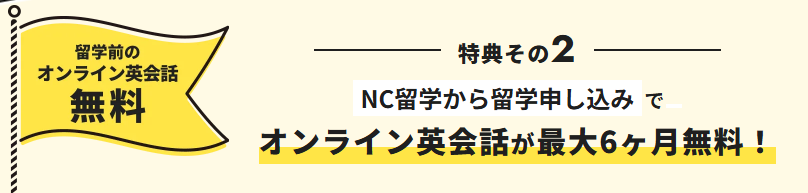 - 留学期間が4週間以上の場合:オンライン英会話が6ヶ月無料