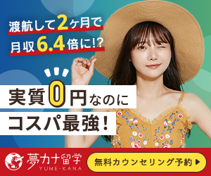 ワーホリを検討している方は特に、エージェント候補に夢カナを入れておいて損はないです。