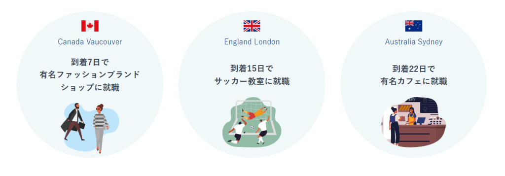 しかし98.4%の夢カナ生が、現地到着から3.1週間以内に希望したローカルの職種に就くことができています。