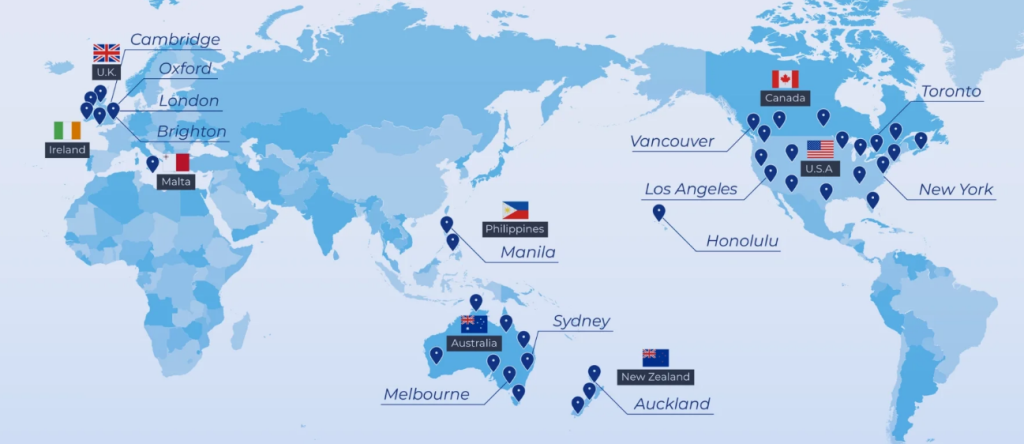 夢カナでは、主要な留学先に24時間365日、トラブル解決のサポートをできるオフィスを設置しいます。