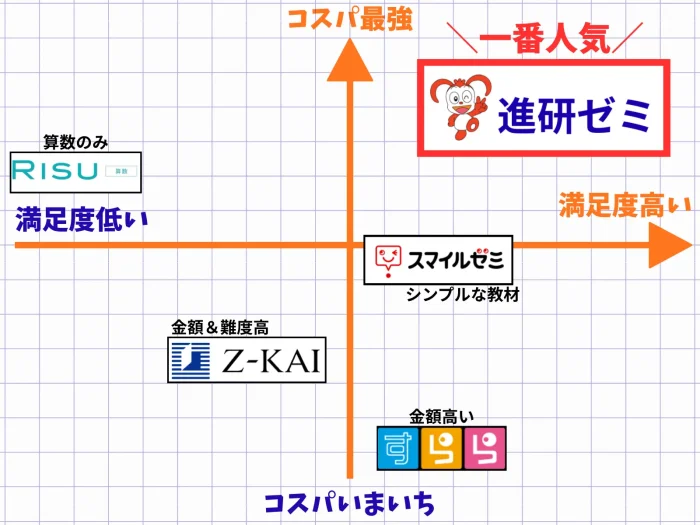 シンプルに勉強することを強みとしているので進研ゼミとは違った魅力があります。